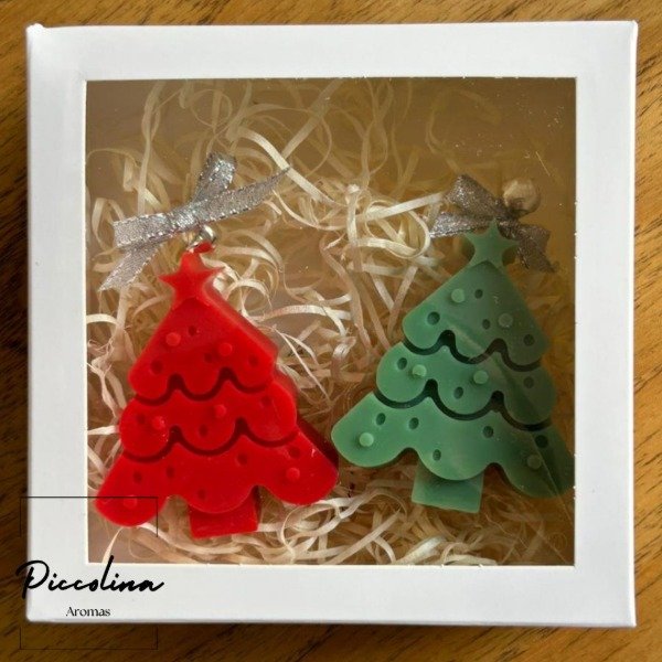 Este set incluye dos arbolitos de Navidad, delicadamente moldeados y aromatizados.