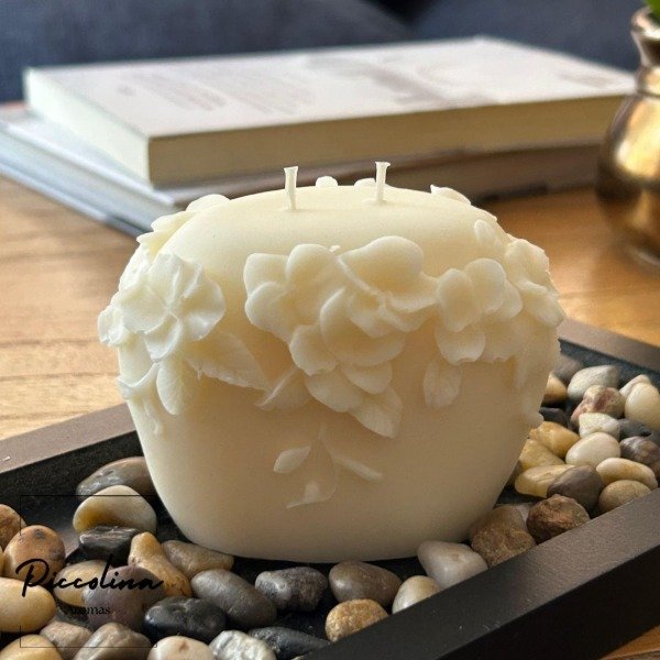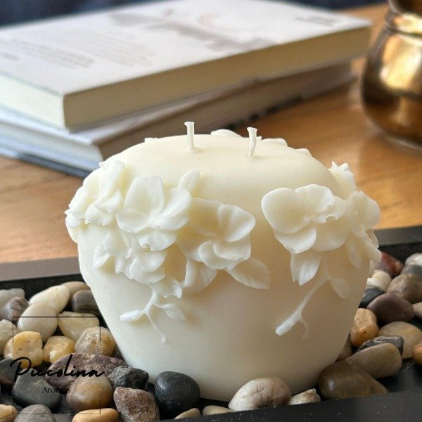 La Bouquet es una vela decorativa y aromática con un delicado diseño floral en relieve que rodea toda su superficie. Ideal para colocar sobre una bandejita o base, ya que no lleva recipiente: la propia vela es la protagonista. Perfecta para ambientar, regalar o dar un toque romántico a tus espacios.