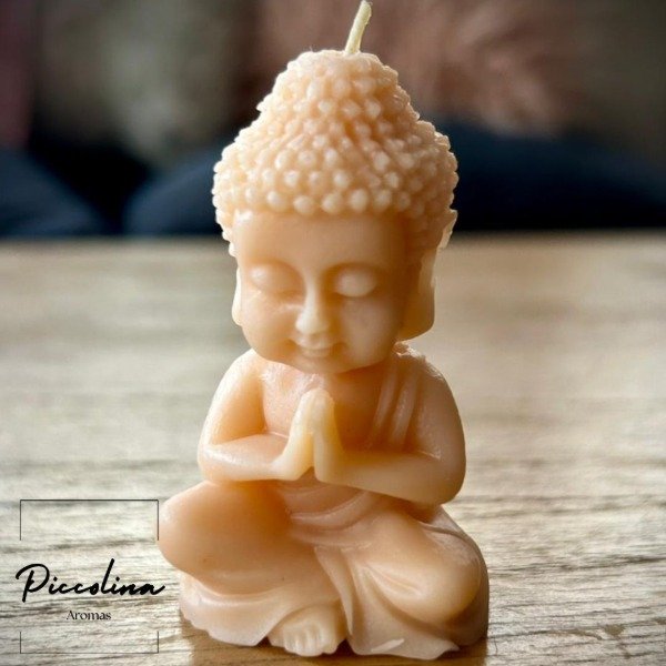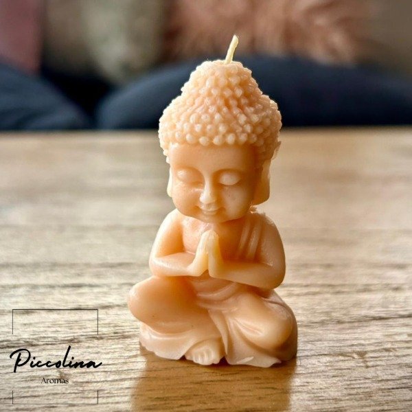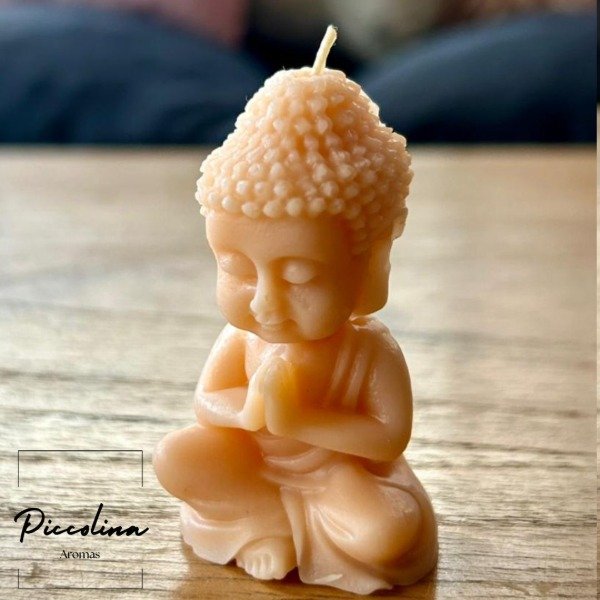 Esta vela artesanal de aproximadamente 6 cm de alto es ideal para decorar rincones especiales o regalar como símbolo de serenidad.