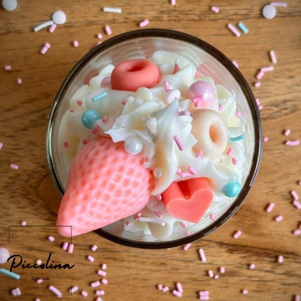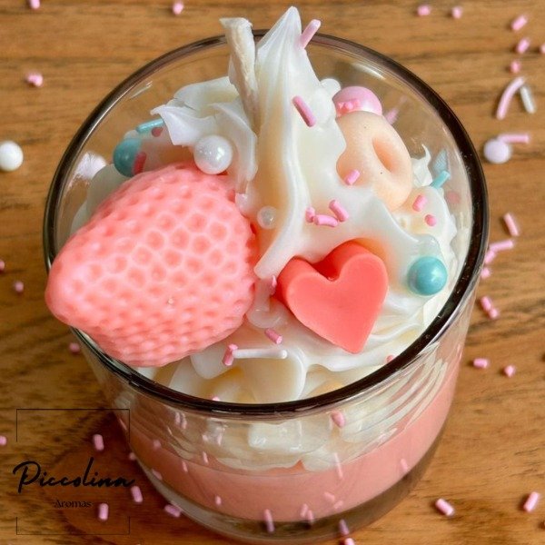 Nuestra vela Postre de Frutilla es una verdadera delicia para los sentidos. Inspirada en los postres más tentadores, está diseñada con un nivel de detalle súper realista, logrando una apariencia tan irresistible que dan ganas de probarla.