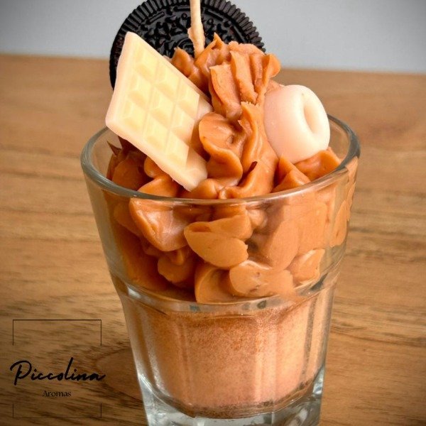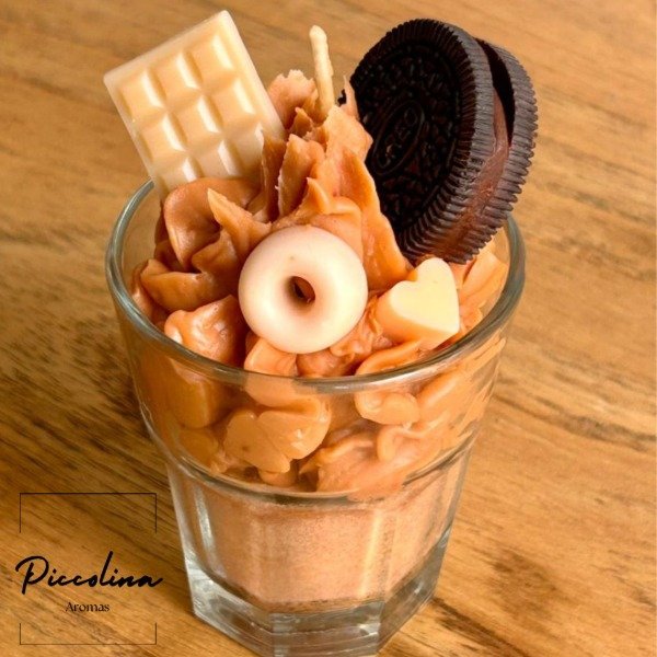 Un delicioso postre de chocolate hecho vela. Lleva crema esponjosa, un mini chocolatín y una Oreo completa, todo 100% en cera. Aromática, original y perfecta para regalar o decorar cualquier rinconcito.