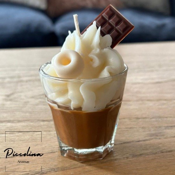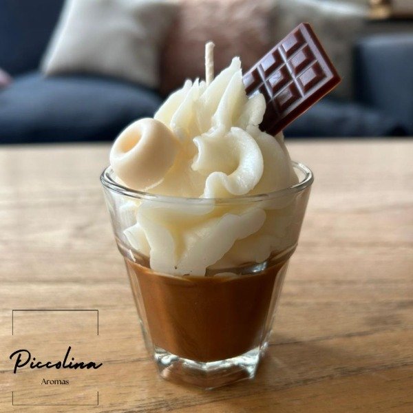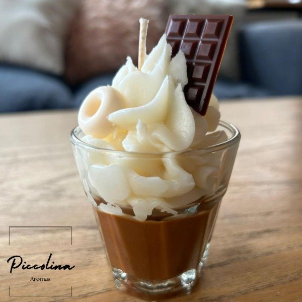 Una vela gourmet irresistible: un postre de chocolate convertido en vela, con crema esponjosa, un mini chocolatín y una mini donita, todo 100% de cera. Aromática, decorativa y perfecta para regalar o darte un gusto.